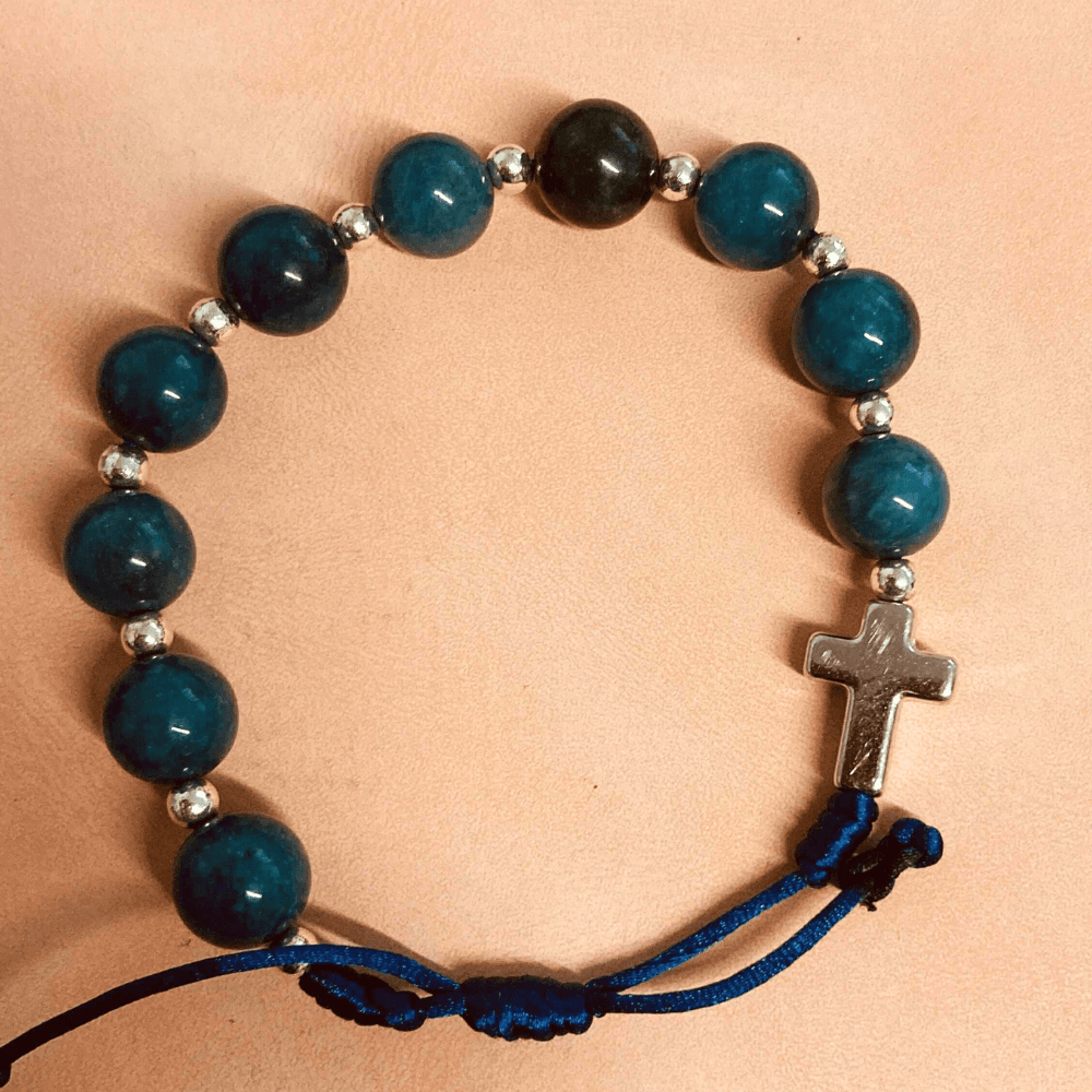 Ręcznie robiony różaniec w formie bransoletki. Różaniec jest regulowany, a jego rozmiar uniwersalny. Wysyłany z woreczkiem jutowym. Idealny do podarowania w prezencie.