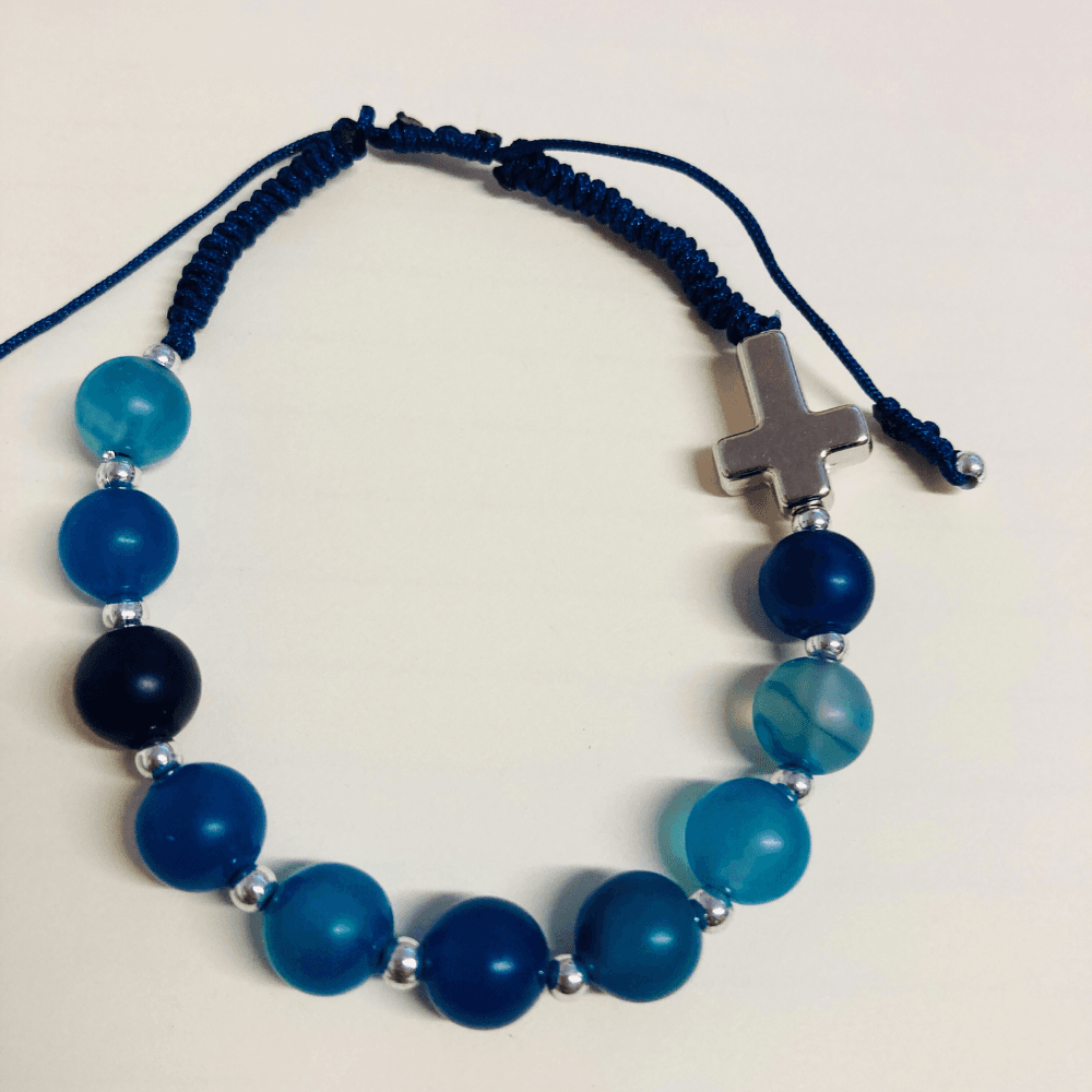 Ręcznie robiony różaniec w formie bransoletki. Różaniec jest regulowany, a jego rozmiar uniwersalny. Wysyłany w woreczku. Idealny do podarowania w prezencie.